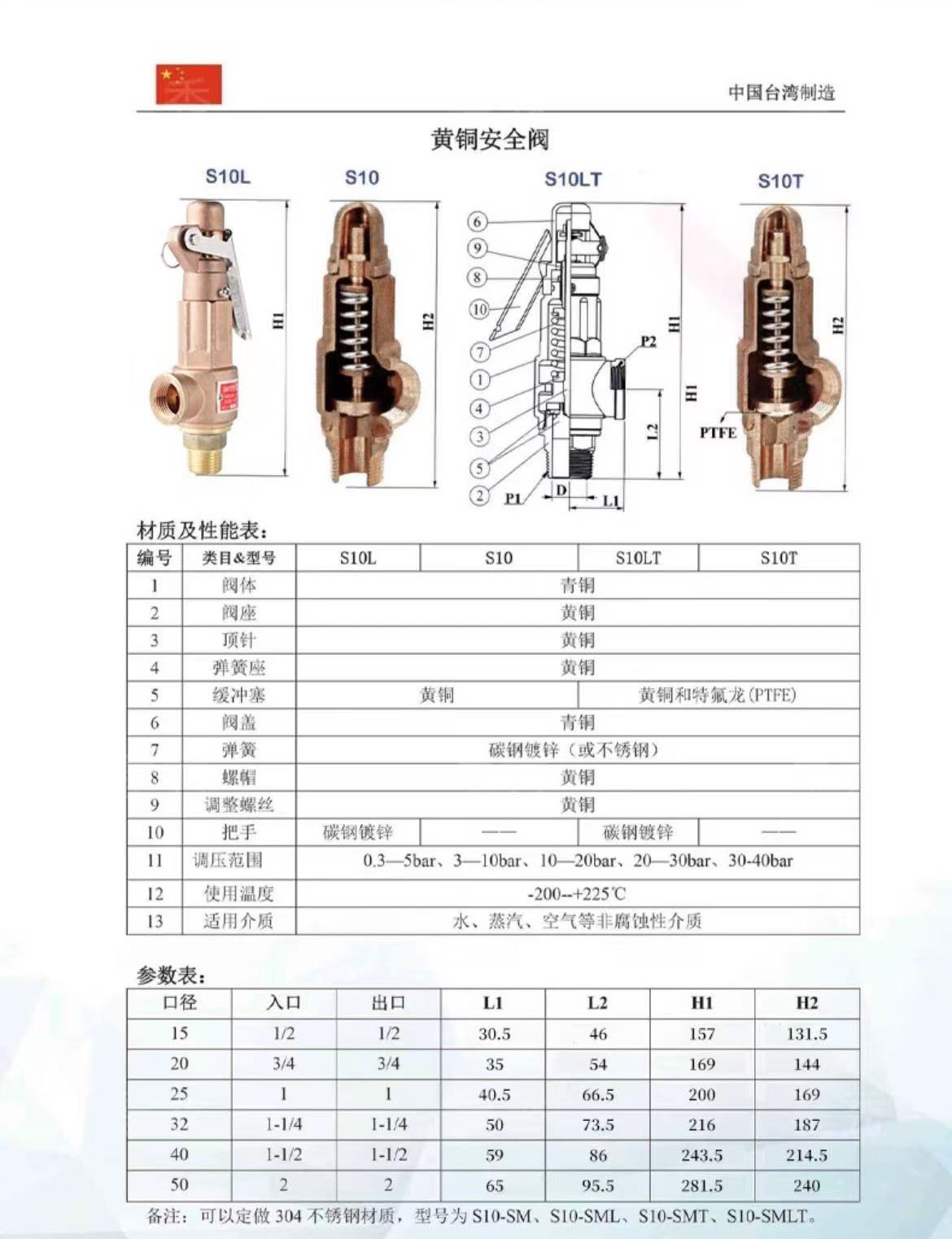 黄铜安全阀 / Product Parameters